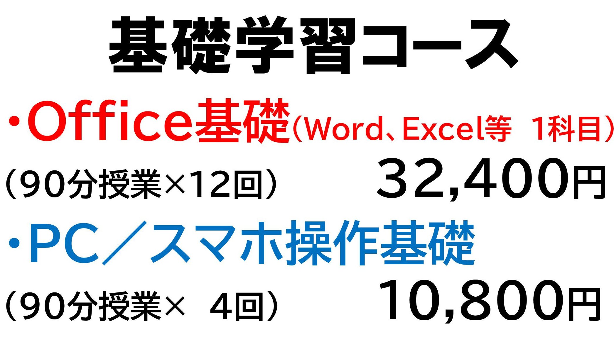 今までパソコン等を触ったことのない、初心者の方向けのコースです。